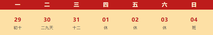 1月1日至3日放假调休,共3天。1月4日(周日)上班。 另:放假期间公司将安排专门的值班人员为有需要的客户进行服务。 公司24小时值班电话:0512-62807898